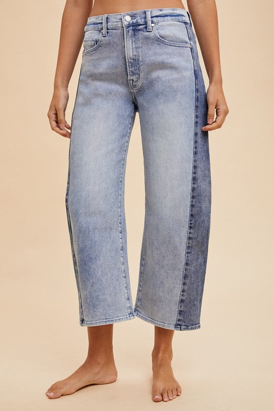 Avery Two Tone Side Panel Stretch Barrel Leg Crop Denim