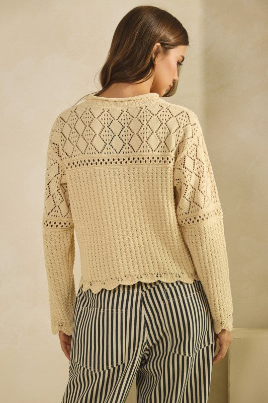 Introducing the Elias Knit Lace Top—your new go-to for effortless elegance! This ivory beauty combines delicate lace detailing with cozy knit comfort, making it perfect for layering or wearing solo. Whether you're dressing up for a night out or keeping it casual, this versatile piece transitions seamlessly from day to night. The soft, breathable fabric feels as good as it looks, while the intricate lace adds just the right amount of sophistication. Pair it with your favorite jeans, skirts, or trousers for endless styling possibilities. A timeless wardrobe essential that never goes out of style.