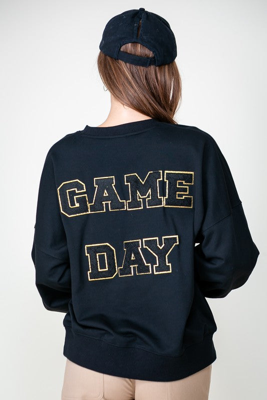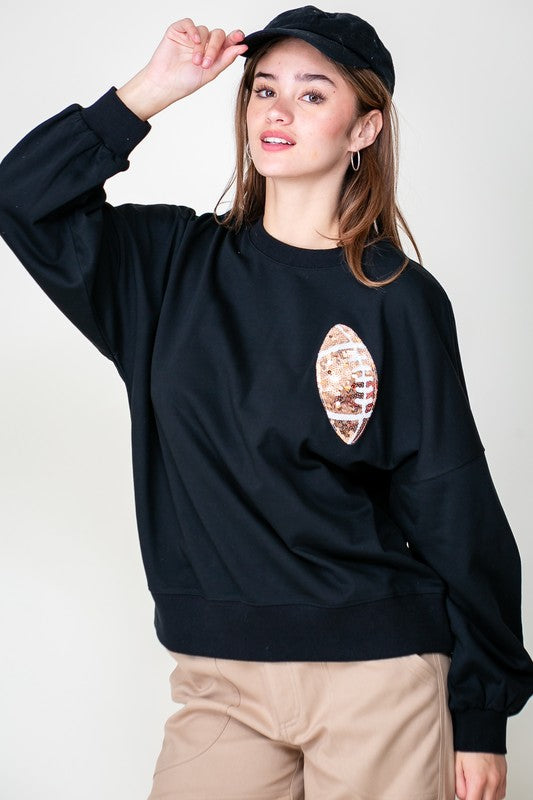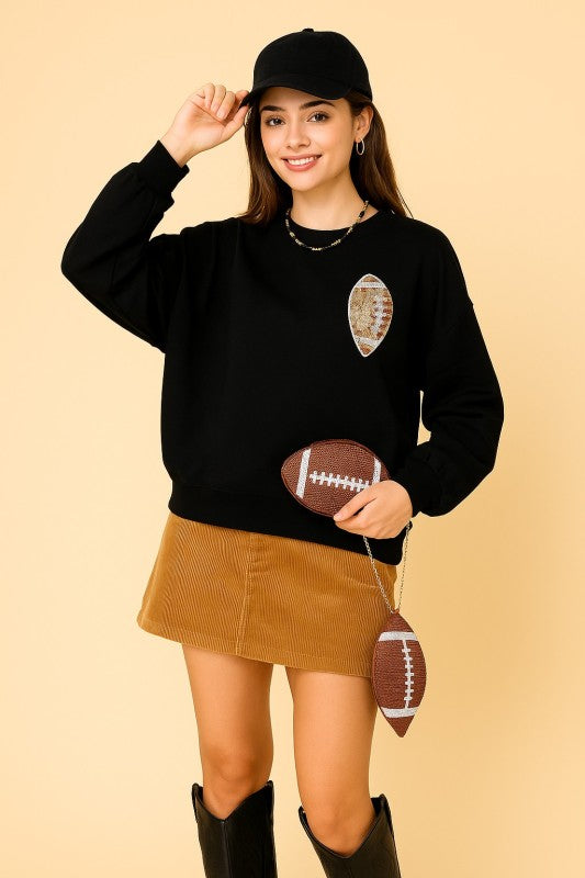 Get ready to cheer in style with this cozy oversized sweatshirt! Featuring a bold football patch on the front and a vibrant game day logo on the back, it’s perfect for showing your team spirit. Whether you’re at the Super Bowl, championships, or school events, this long sleeve crew neck keeps you comfy and game-ready.