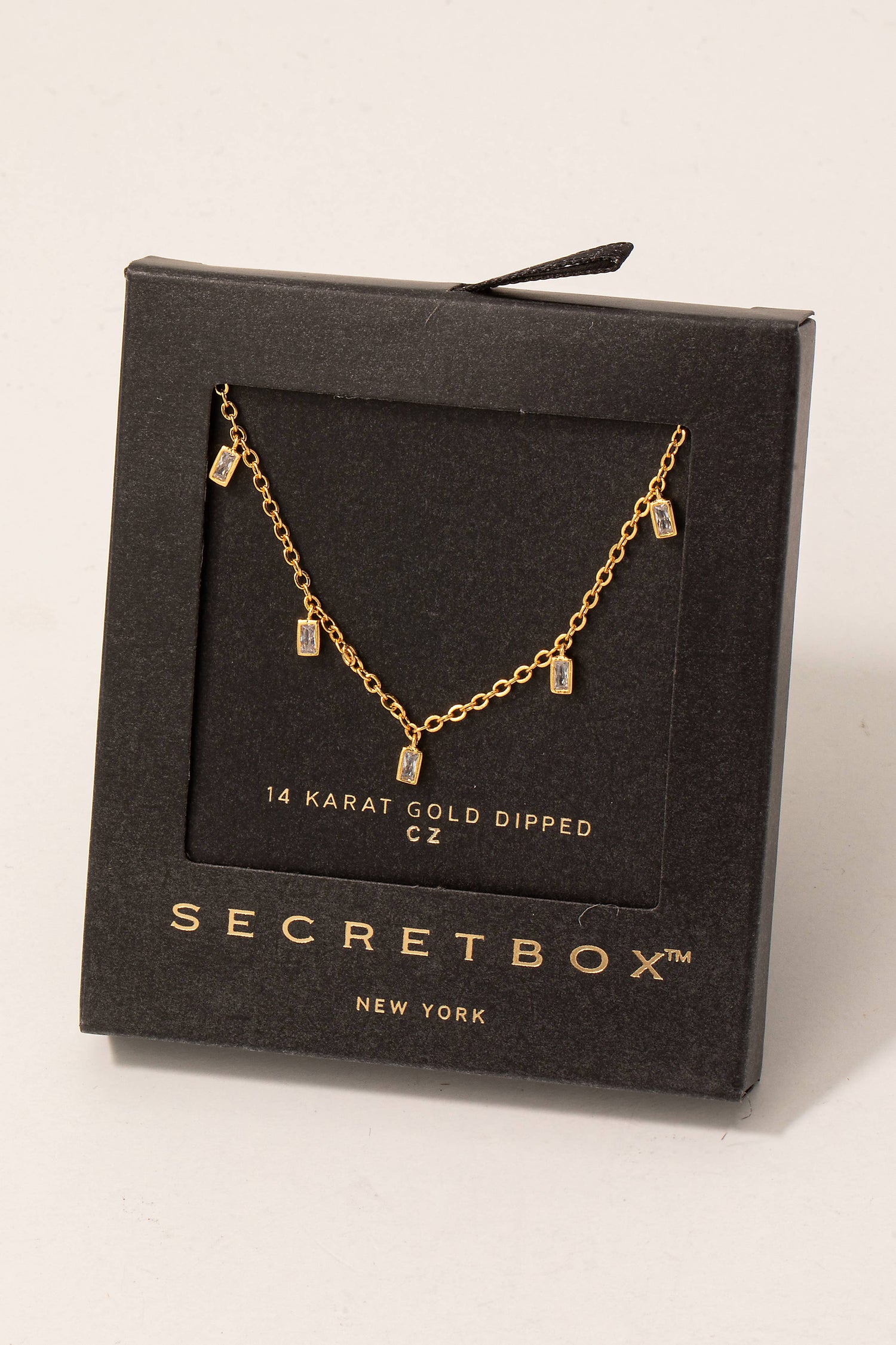 Secret Box Gold Dipped Cz Baguette Charms Necklace