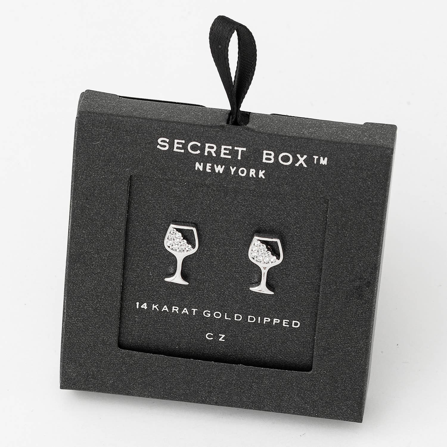 Secret Box Gold Dipped Cz Wine Glass Stud Earrings