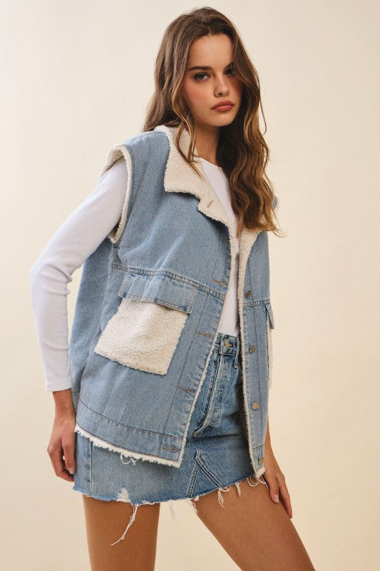 Layer up with effortless style in this washed denim cloud vest! Featuring a soft, lived-in finish and a handy pocket for your essentials, it's the perfect piece to throw over any outfit. Whether you're heading out for a casual day or need an extra layer, this versatile vest delivers comfort without compromising on charm. A wardrobe staple that works as hard as you do.